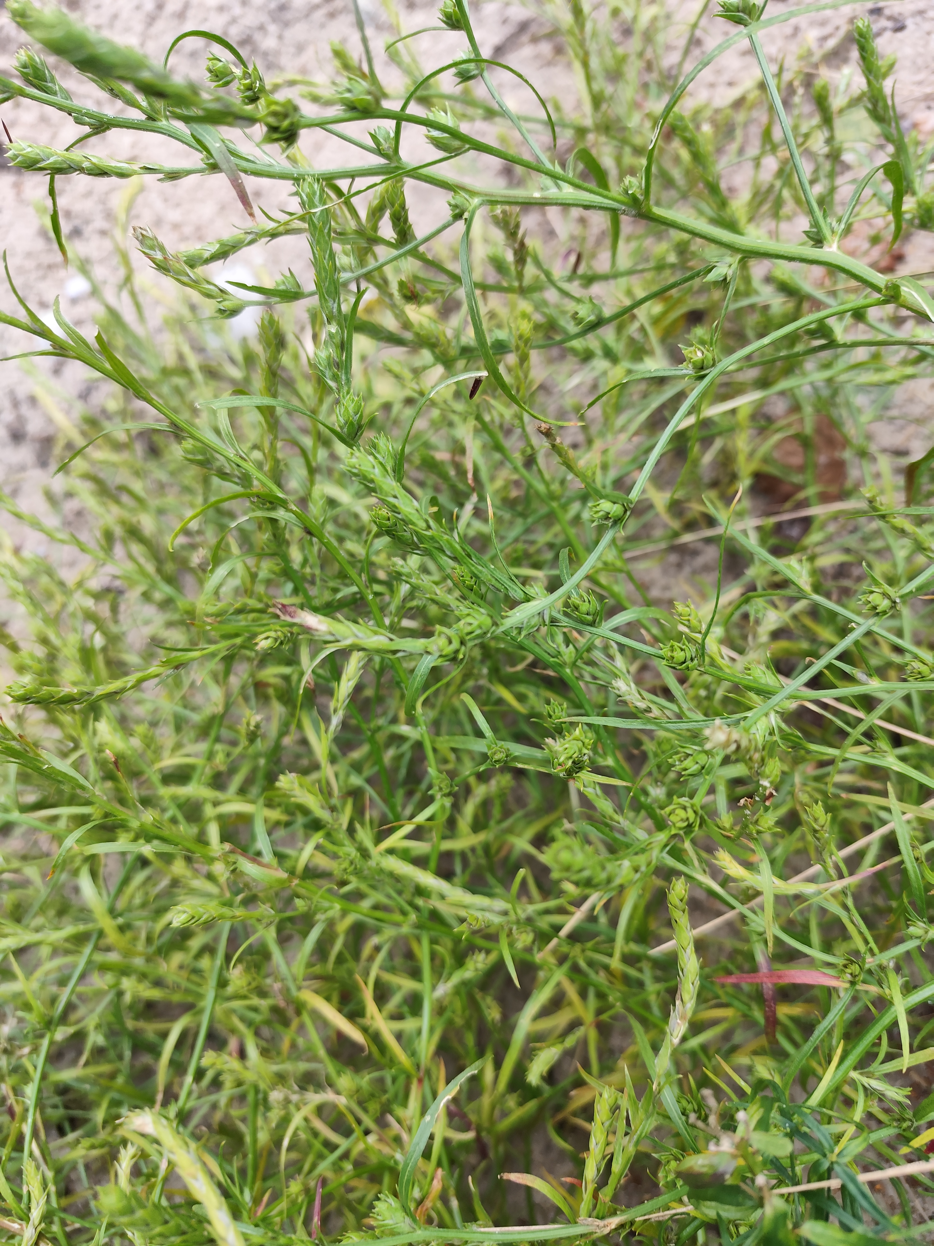 | Aprašymas: | Plikažiedis drugialaišis (Corispermum intermedium) Schweigg. Vienmetis žolinis augalas. Aukštis: 10 – 50 cm. Stiebas kylantis, šakotas nuo pagrindo, plikas. Lapai linijiški 1 – 4 cm. Ilgio, išsidėstę pražangiai. Žiedynas tankus, pailgas. Žydi liepos – rugpjūčio mėnesiais. Auga pajūrio smėlynuose. |