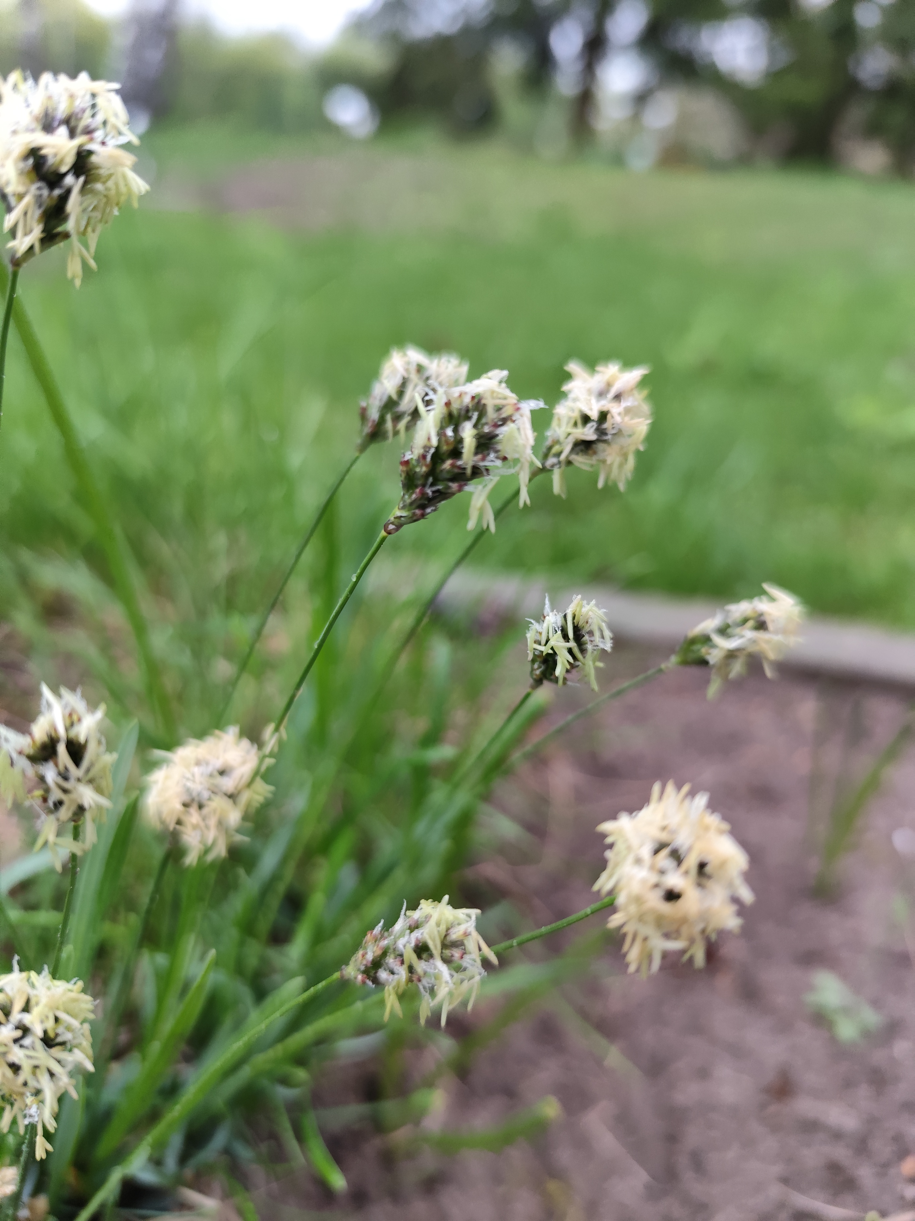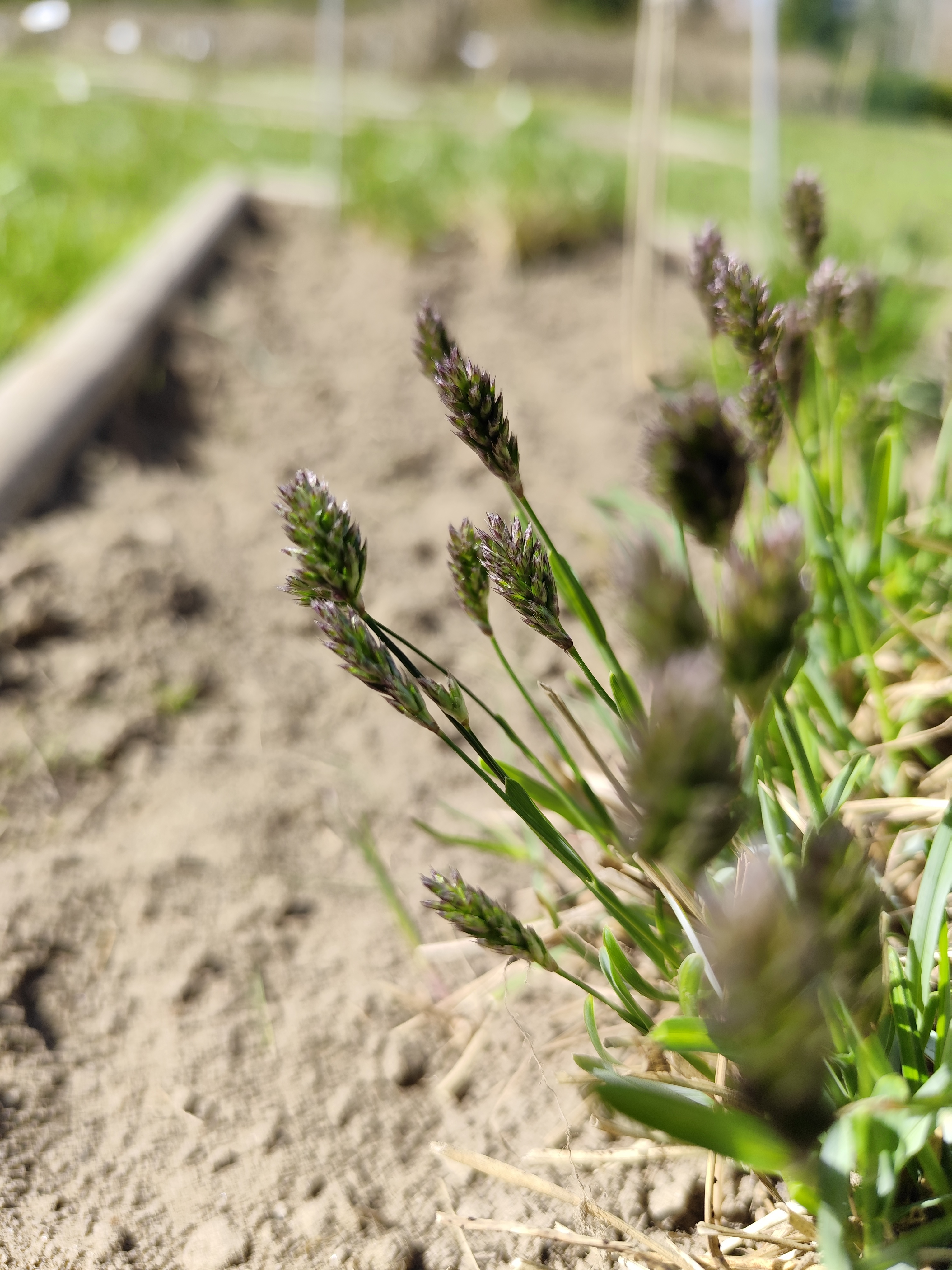 viršūnė smailėjanti, melsvo atspalvio. Žiedynas – rusvos spalvos tanki varputė,