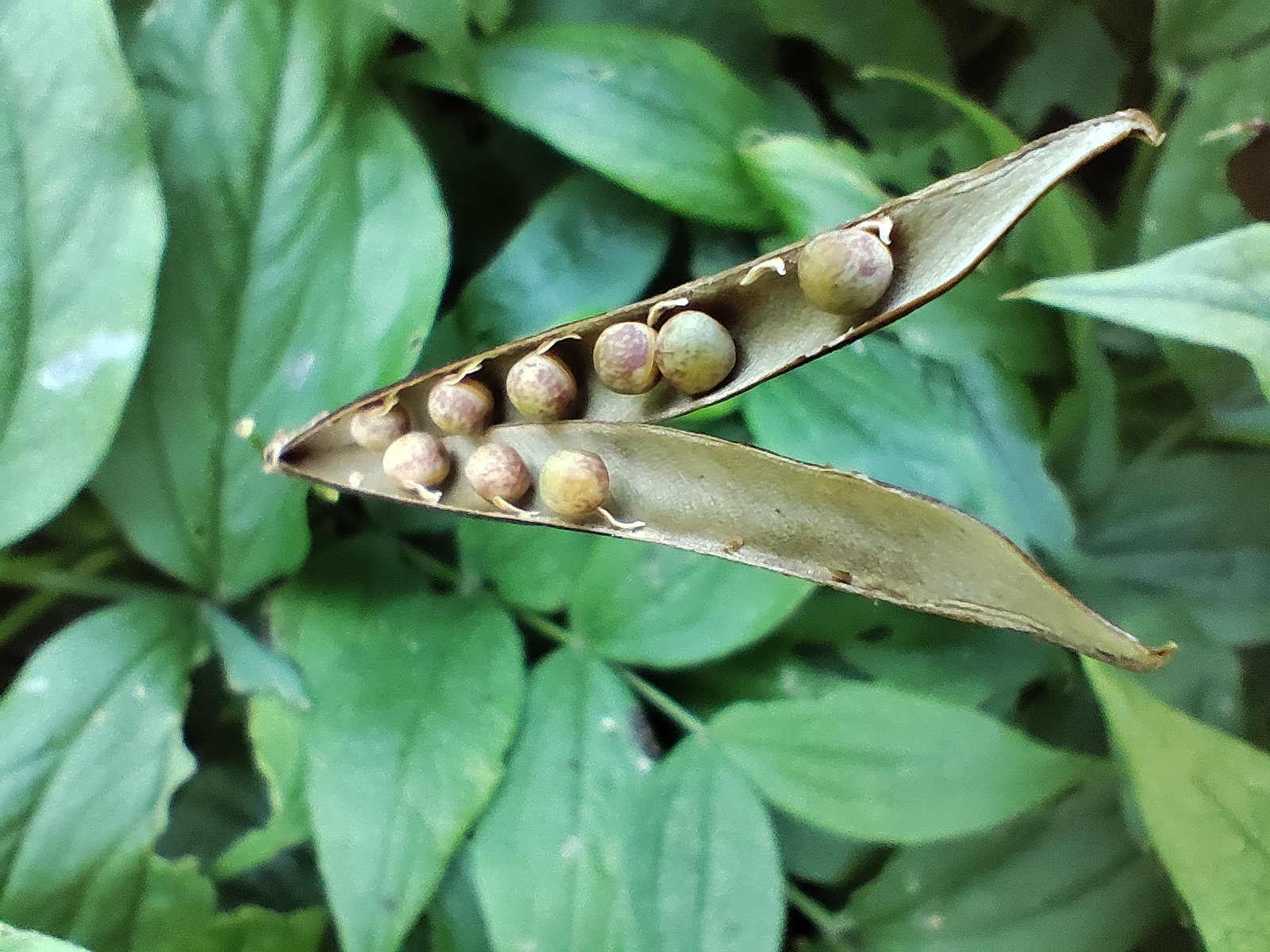 baigiant žydėti – žalsvai melsvas. Vaisius – ankštis, kuri sėkloms subrendus