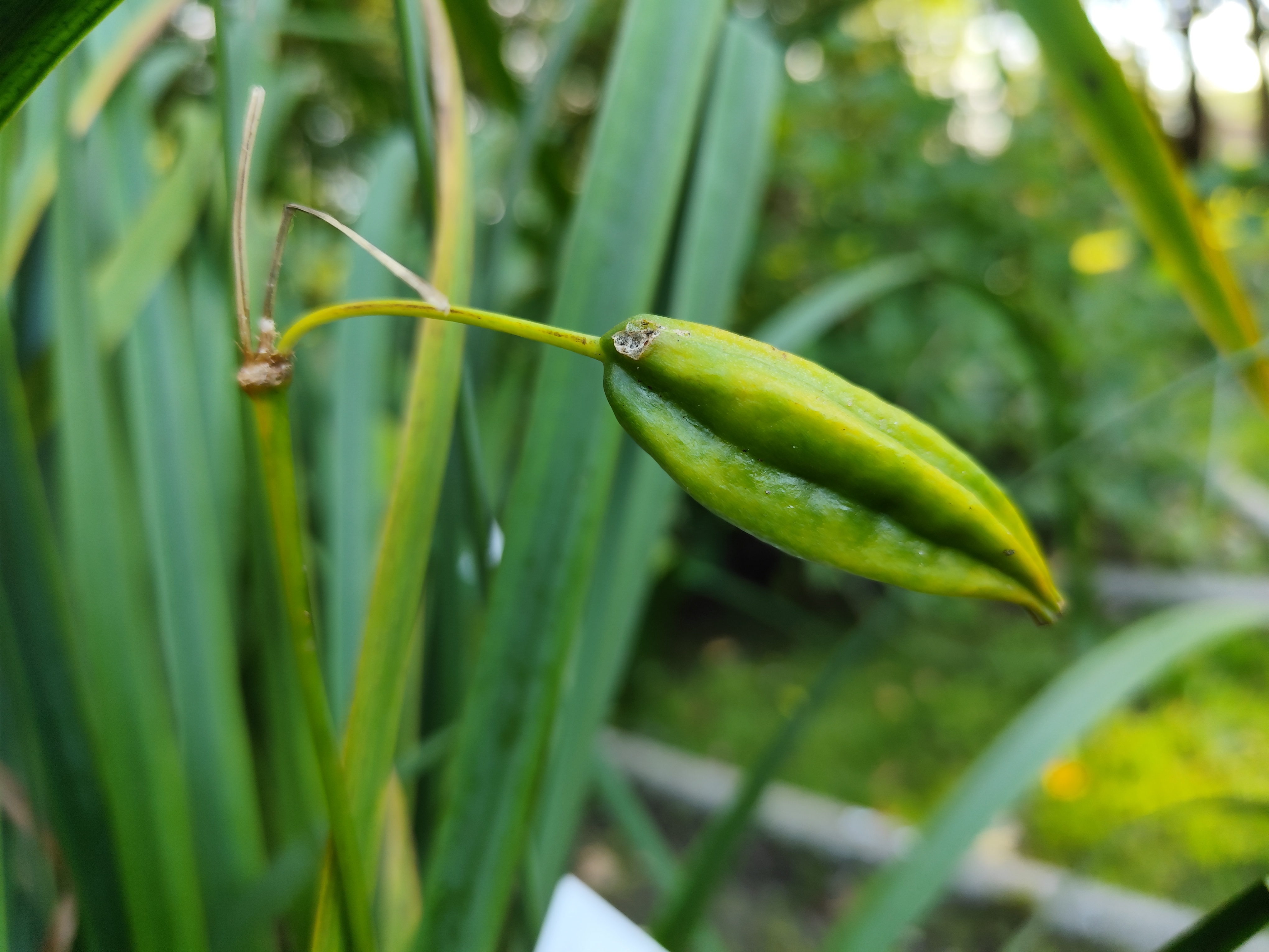 ryškiai geltonos spalvos. Vaisius – sausa, trilizdė dėžutė su šiek tiek