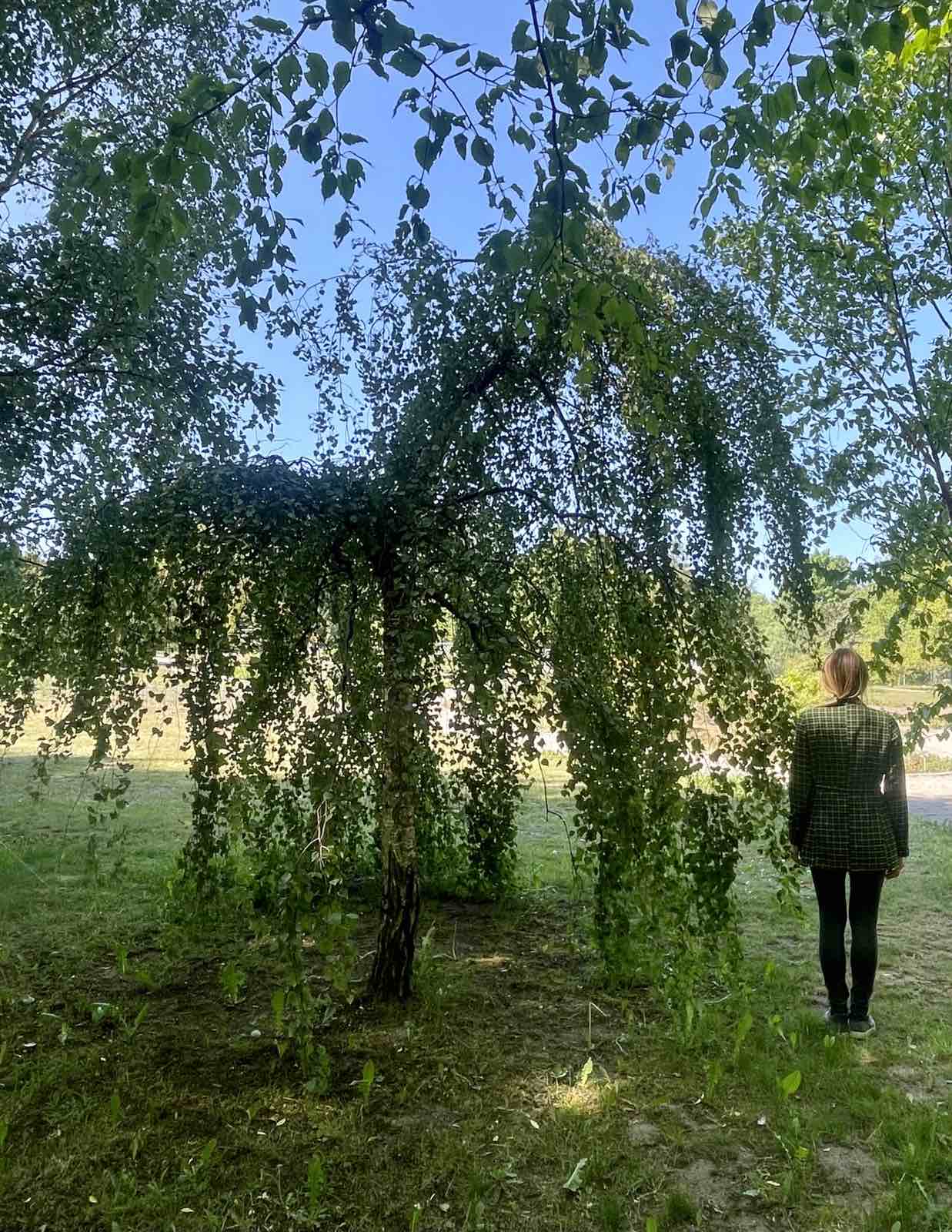 stipriai svyrančios žemyn, dažnai beveik siekia žemę, sudarydamos dekoratyvų,