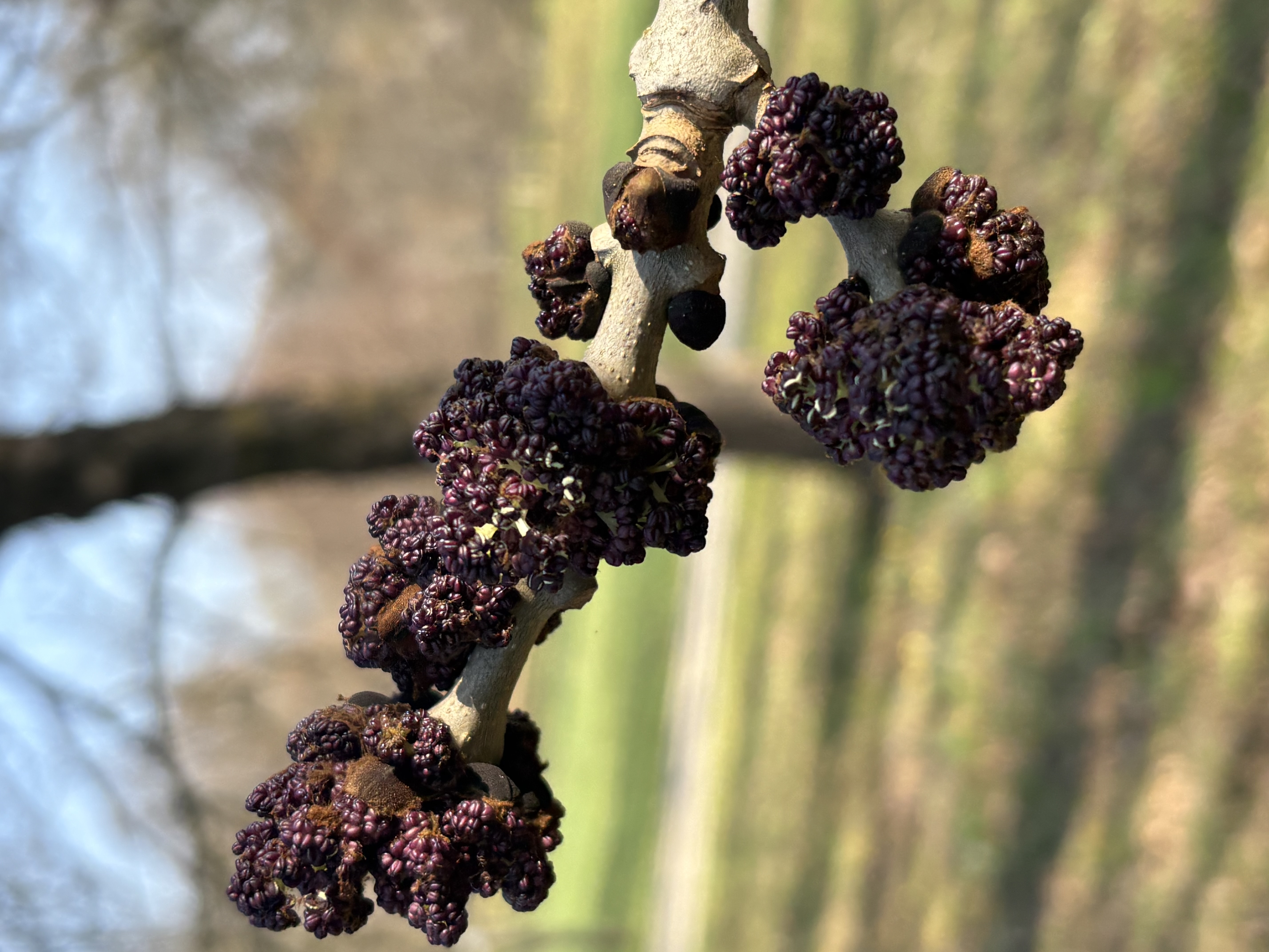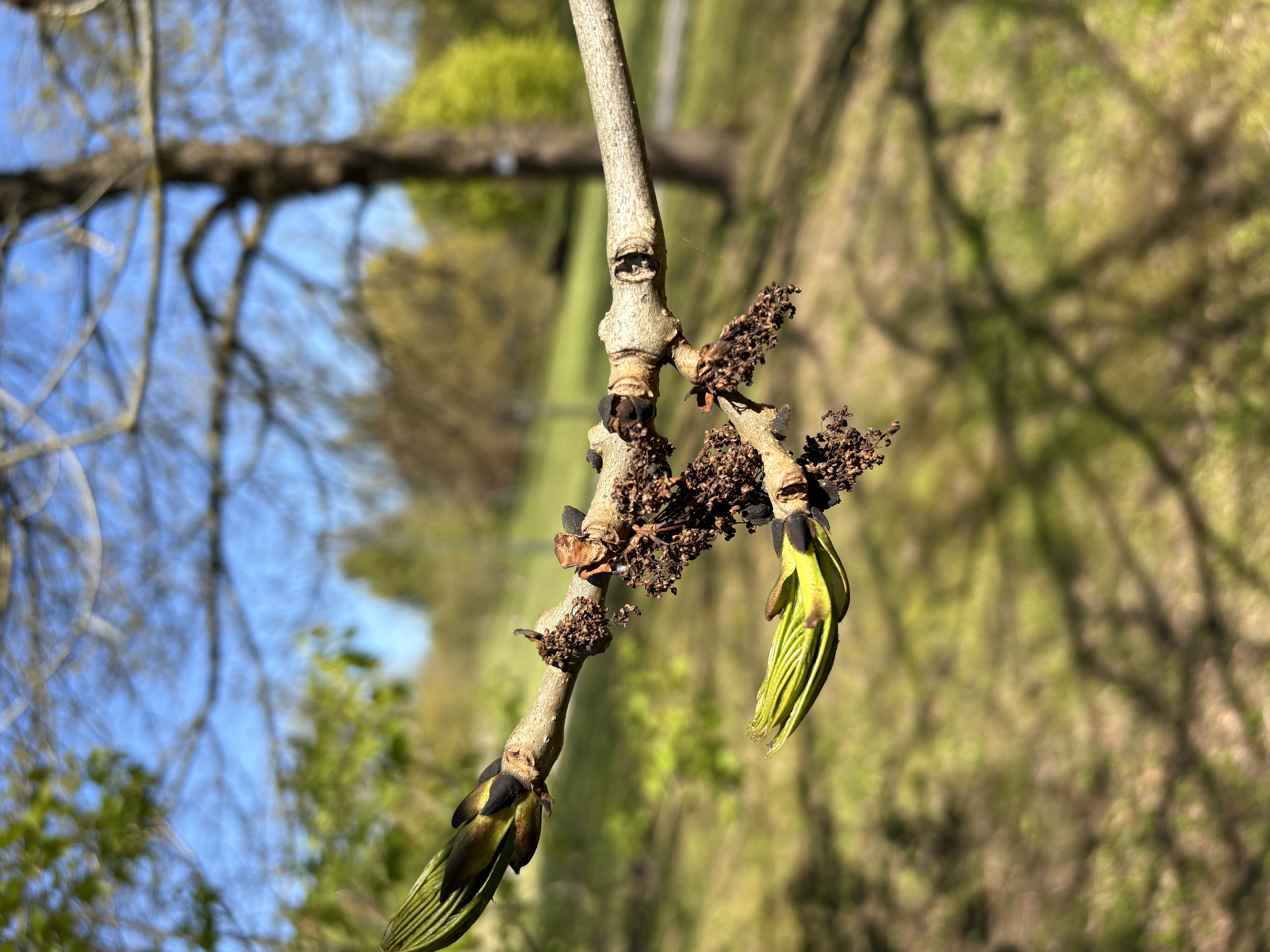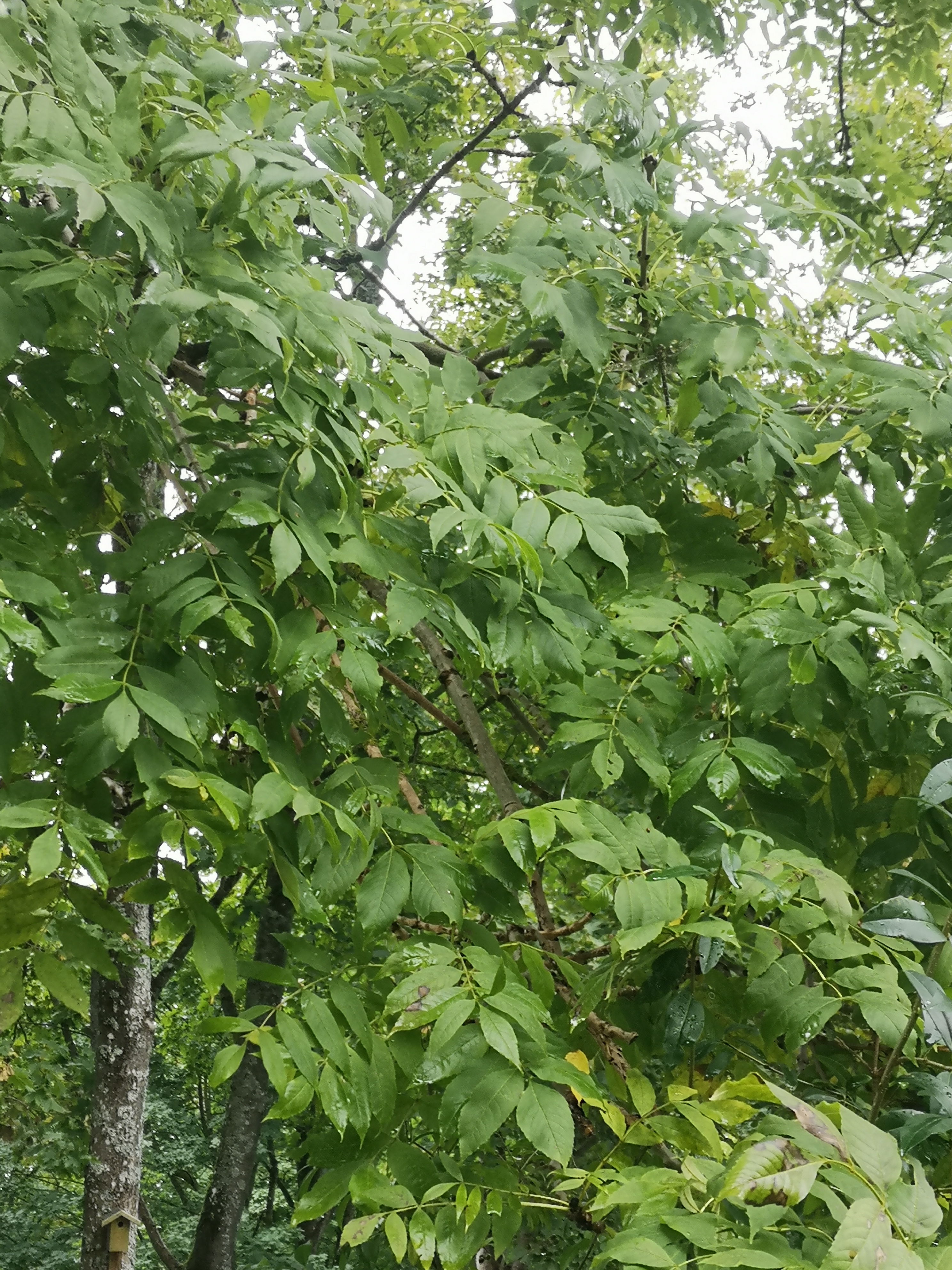 suploti. Pumpurai juodi arba rusvai juodi, su mažomis karpelėmis. Lapai dideli, iki 40 cm ilgio, sudaryti iš 11 (5–15) lapelių; lapeliai beveik bekočiai, lancetiški arba pailgai kiaušiniški, 4–9 (12) cm ilgio ir 1,5–4 (5) cm pločio, nusmailėjusiomis viršūnėlėmis, nelygiais pjūkliškais kraštais, viršutinė pusė plika, tamsiai žalia, apatinė — šviesiai žalia, pagysliais ypač lapelių pamatas, šiek tiek plaukuoti. Žiedai susitelkę į kuokštus arba šluoteles, išsiskleidžia iš praėjusių metų trumpųjų ūglių šoninių pumpurų. Žiedai dvilyčiai. Žydi prieš lapams skleidžiantis, dažniausiai V mėn. Sparnavaisiai lancetiški arba pailgai elipsiški, gelsvai ar šviesiai rudi, dažnai įskeltu arba apskritu galu, persukti. Sėkla plati, plokščia, vagota, siekia iki pusės sparnelio ilgio. Greitai augantis medis. Dirvožemiui gana reiklus. Šviesamėgis. Tai vietinė medžių rūšis Lietuvoje. |