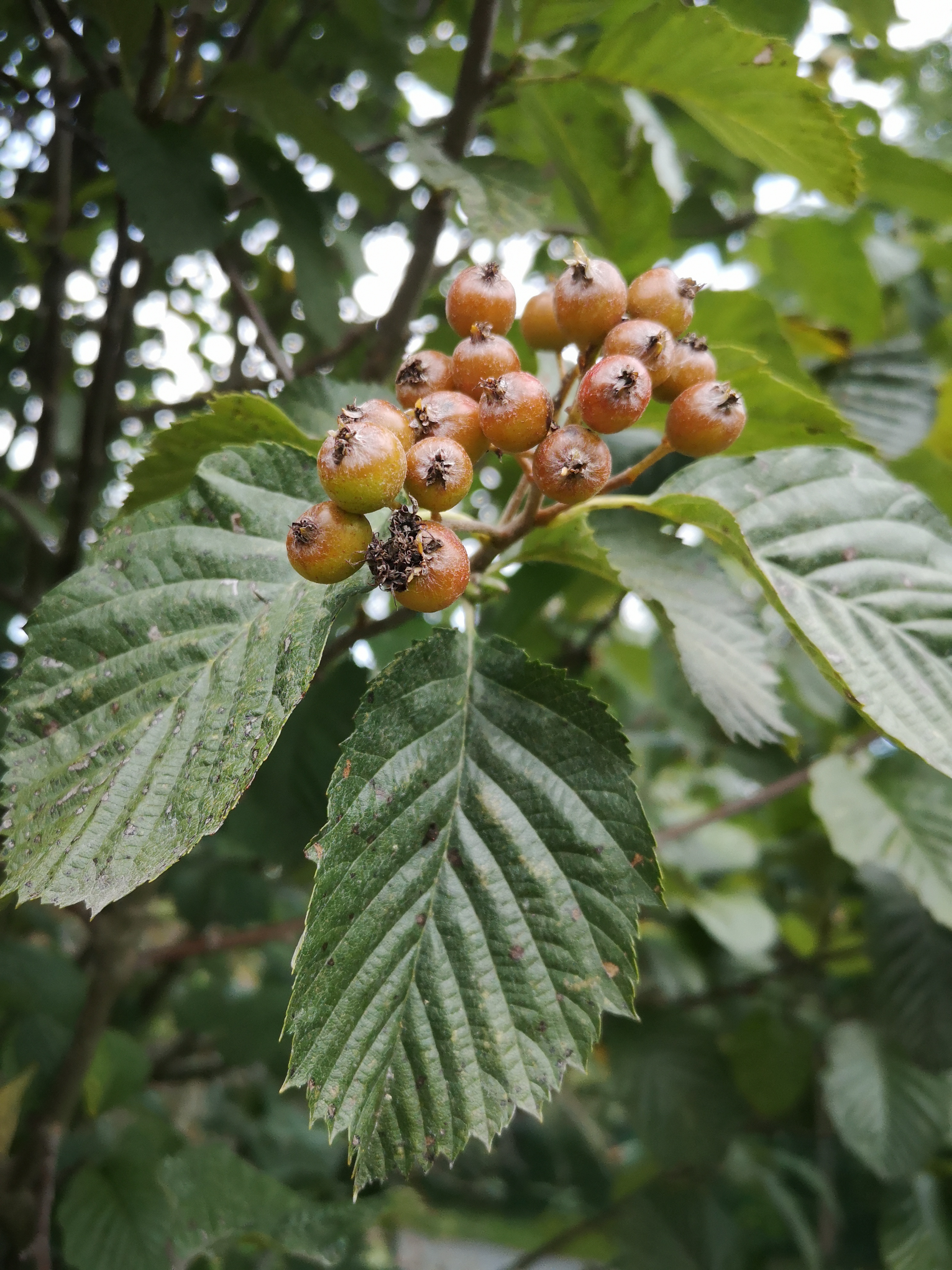 Hibridas tarp Sorbus aria ir Sorbus torminalis. Žievė lygi, pilkai ruda, su amžiumi šiek tiek trūkinėjanti. Lapai paprasti, plačiai kiaušiniški, su smulkiais dantukais